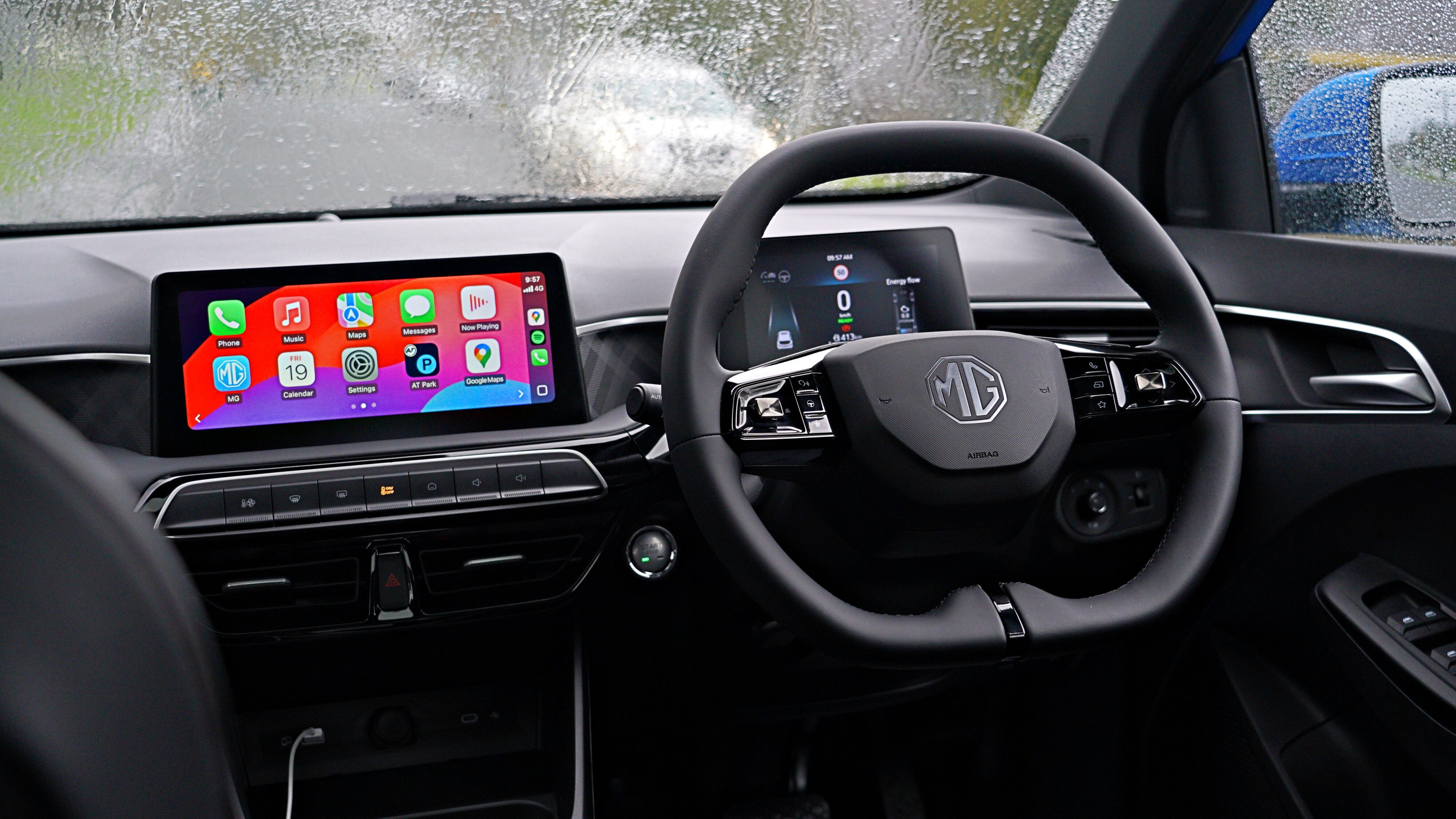 On the wheel in question, you find the two joystick controls (now familiar to MG cars) you will use to control most of the tech. And this is, by far, the best implementation in their lineup, and a leap forward. The screens are of good definition and refresh rates, are well integrated to the dashboard and are now proper snappy, reacting to inputs with no hesitation. Everything is laid out in a logical way, and what you see is what you get, without the need of too much menu jumping. The 360 camera will put cars 7 times its price to shame, and is extremely helpful when placing this car anywhere, and the driving assistance suite is heavily improved as well: adaptive cruise can handle the stop and go of traffic with more comfort, and lane keeping, while intrusive, is very assertive and can be helpful in many situations.