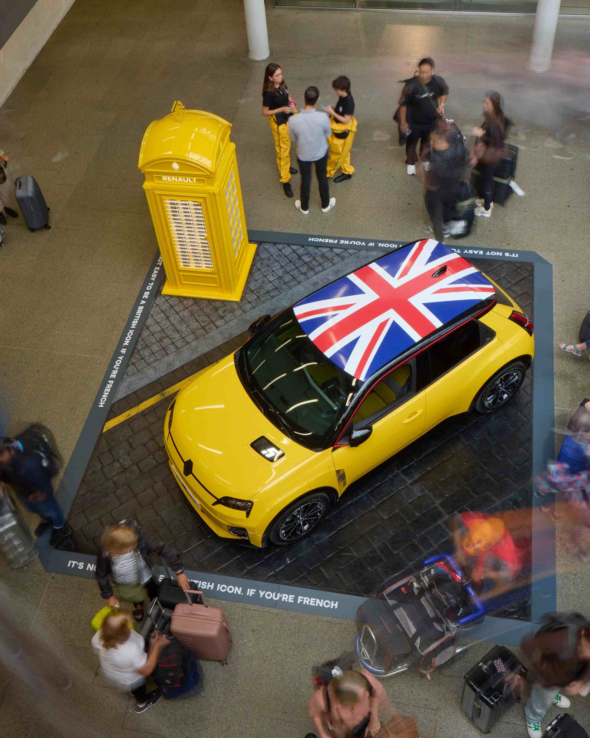 “It’s not easy to be a British icon. If you’re French,” it’ll remind passers-by, as they are invited to explore the new Renault 5’s contemporary design and innovative technology. Some will be offered the chance to take home a limited-edition scale model of the car, wearing the same patriotic livery.