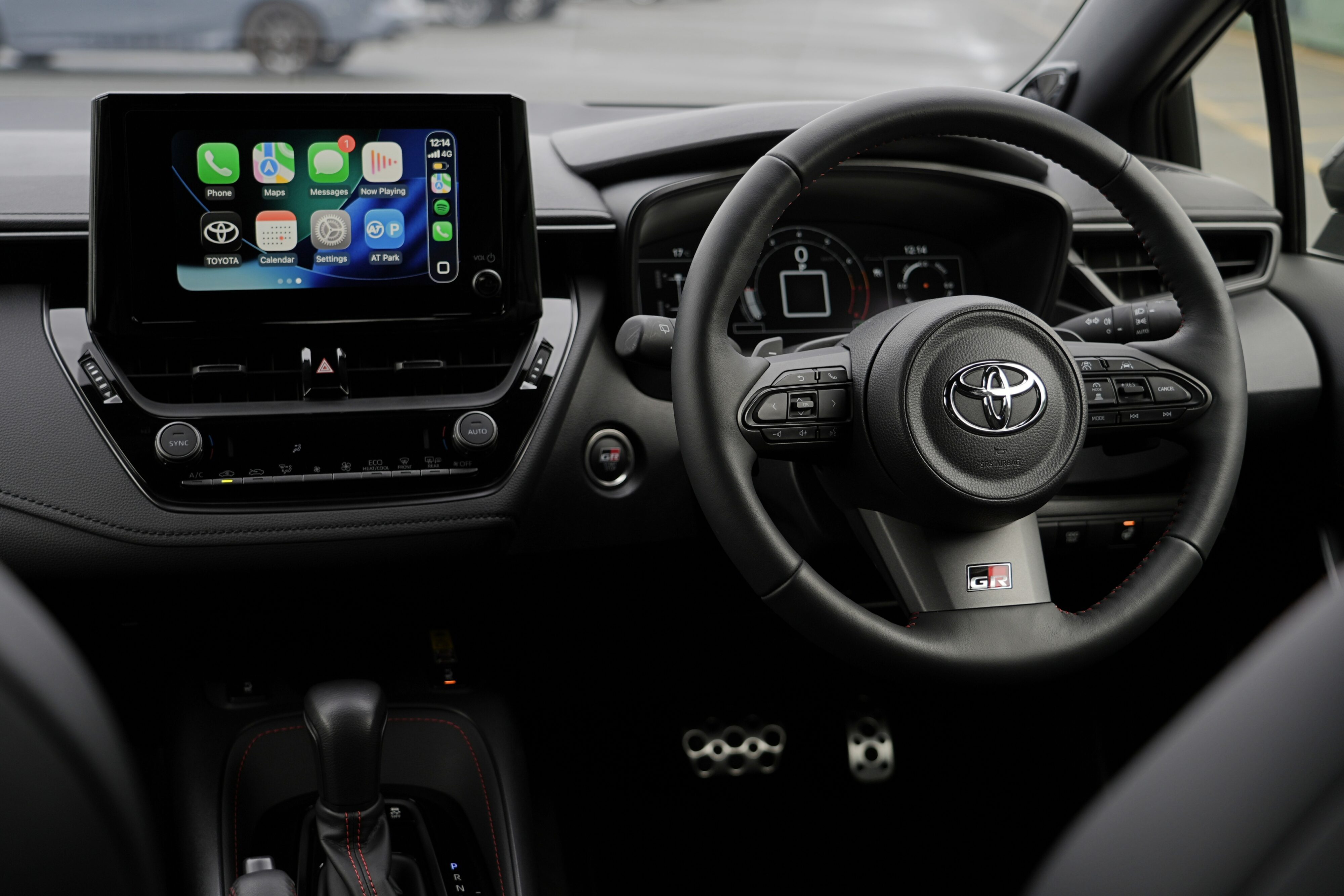 In terms of the tech, Toyota has left much of the Corolla’s layout intact. The screen still feels like a “stuck-on” tablet compared with some newer designs, but it does the job and doesn’t get in the way of the driving experience. That said, some of the tech shows its age: parking sensors can be slow to react and CarPlay resolution is beginning to look dated — you won’t miss a bigger display for the things that make the GR great, but the interface is not the sharpest. On the plus side the cabin is straightforward, tactile and driver-focused; nothing unnecessary, nothing frivolous.